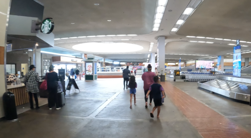 そして、前に進んでいくと・・・右側がバゲージエリア、荷物をpickしたら、左側にいくと、レンタカーセンターに向かうためのトラムに乗車します。
